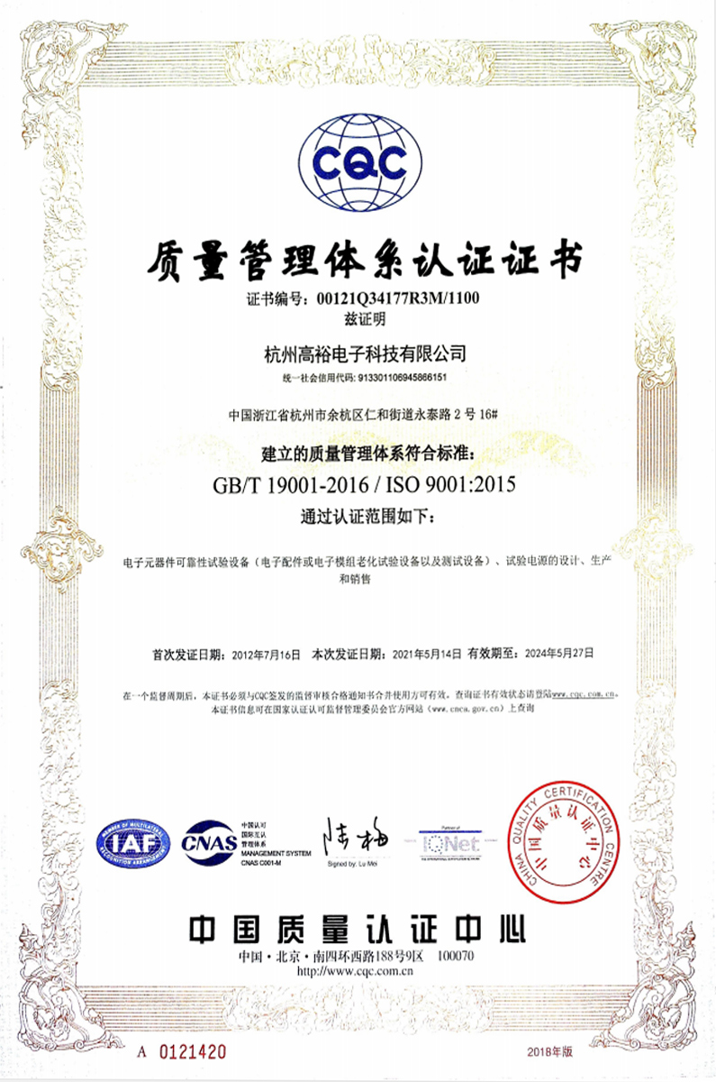 質(zhì)量管理體系認(rèn)證證書
