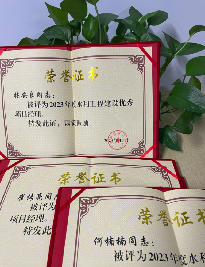 近日,河南省水利學(xué)會(huì)頒發(fā)了2023年度水利工程建設(shè)優(yōu)秀項(xiàng)目經(jīng)理的榮譽(yù)證書(shū),我司多位同志榮獲此榮譽(yù)!
